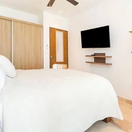 Some of the top landmarks to visit in Playa del Carmen include Los Fundadores Park and the Scenic Point Esmeralda White-Sand Beach, which are situated 2.1 and 2.2 km from the holiday home respectively. Additionally, Coco Bongo (1.2 km) is also recommended for a visit.